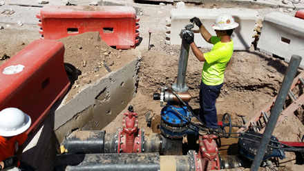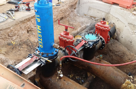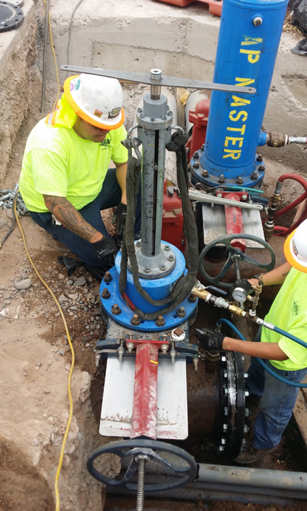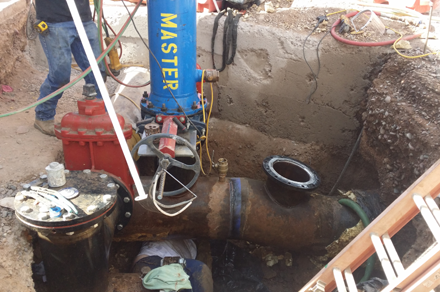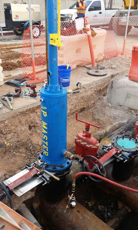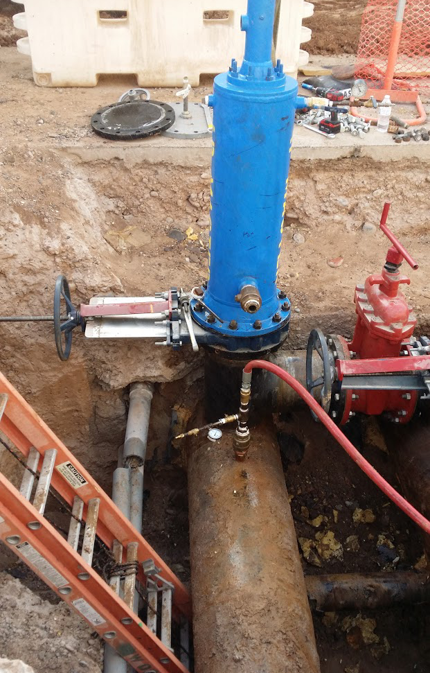 Arizona Tap Master Inc performing a 20" Indoor/Outdoor Chilled Water Line Stop